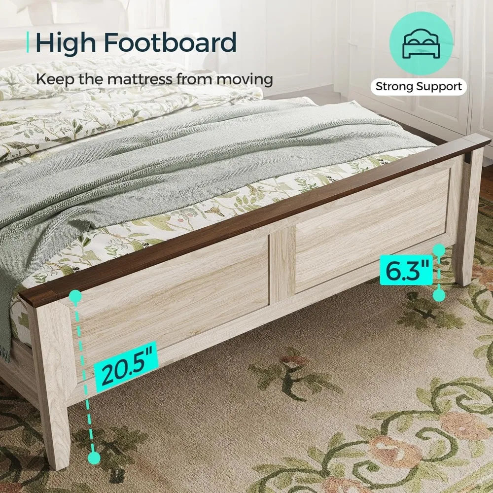- Classic American High-Footboard Design: The LINSY full size wood bed features a high footboard that not only enhances the structural stability of the frame but also offers visual harmony between the headboard and footboard. It prevents mattress slipping and ensures a quiet, restful sleep-say goodbye to squeaks and restless nights.