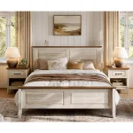 - 3-Pieces Bedroom Set: This 3-Pieces bedroom set includes a farmhouse wood bed frame, nightstand set of 2, this wood bed brings you a romantic night and a comfortable sleep, and the 2 night stands afor clutter-free storage to save your space.