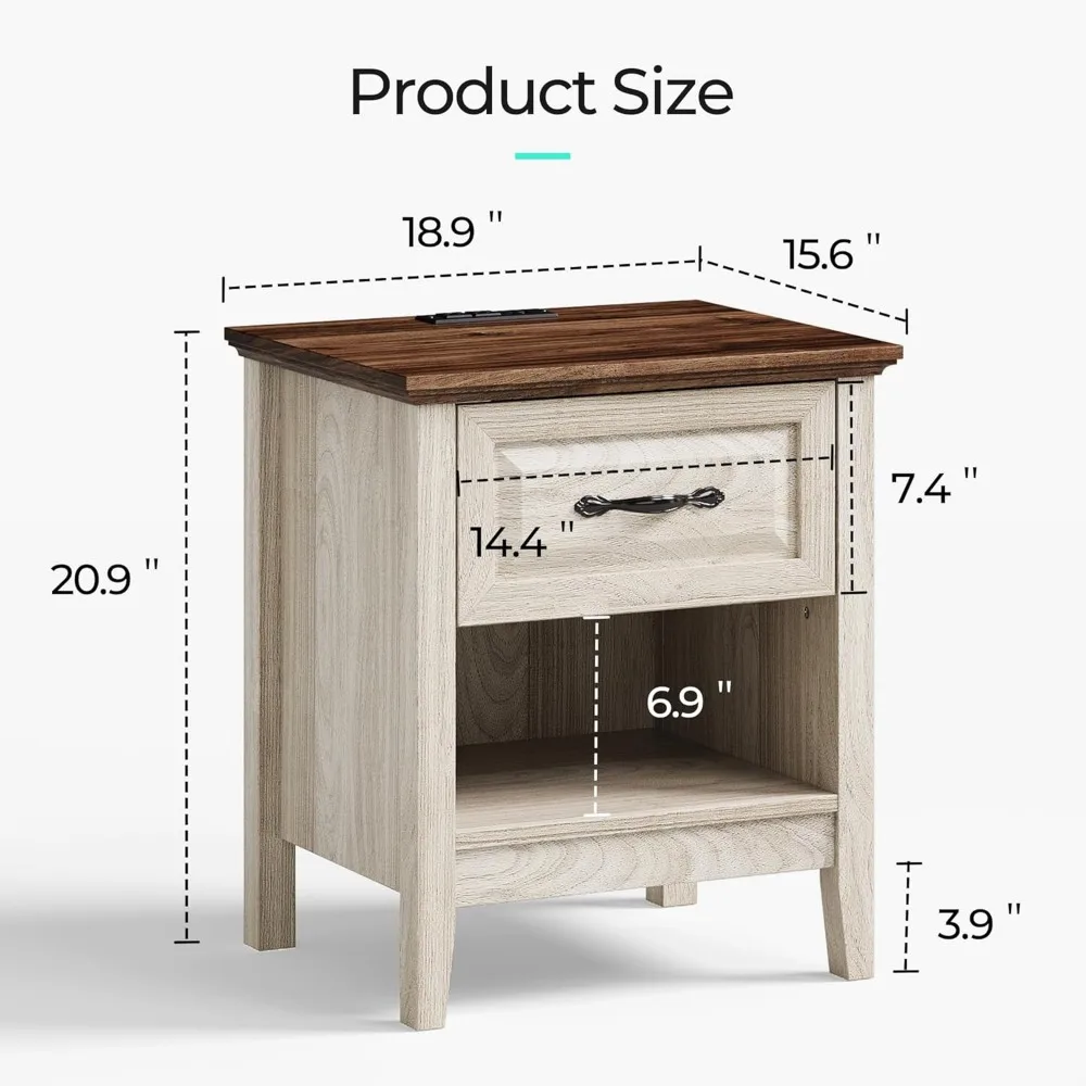 - Farmhouse Nightstand with Type-C Charger : This nightstands features 2 power outlets, 1 Type-C port, and 1 USB port, providing ultimate convenience for charging your electronic devices. Keep your gadgets fully powered and within easy reach, making your everyday life more efficient.