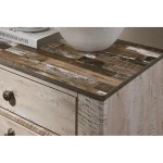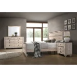 Rustic, urban chic style bedroom set with white wash finish.