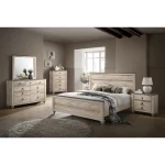 Imerland Contemporary White Wash Finish Bedroom Set, Queen Bed, Dresser, Mirror, Nightstand, Chest